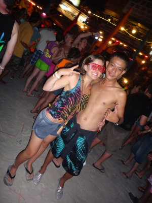 The Full Moon Party happens if you couldn't guess on every full moon, and thousands of backpackers and Thai people alike flood into the island to participate in a night of mayhem. Deciding we were going with the flow we had not even booked a room to stay in on the busiest night of the month...smart. We did somehow find an open room at the port for 2600 baht ($78) a night, not the best deal. But Mike being the haggler and schemer that he is surprised us with a 900 baht ( a little less than $30) room. This worked out for us since we weren't planning on being in the room much before 8:00 am ferry departure.