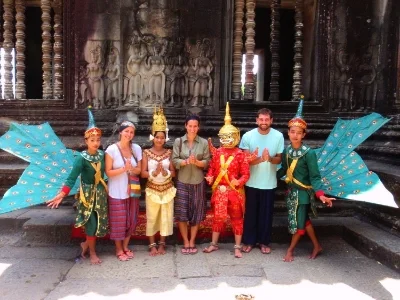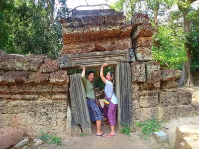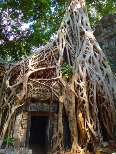 The final temple we visited on this part of the tour was Ta Prohm. This particular temple was my favorite and in my opinion the most beautiful. The ruins of Ta Prohm are left in mostly the same condition as they were found. The jungle and strangle trees are growing around and in between the buildings and rubble of the ancient temple and create almost an erie atmosphere. Ta Prohm became popular when Angelina Jolie's movie 'Tomb Raider' was filmed there, and I could positively see why they thought it would be fitting scenery.