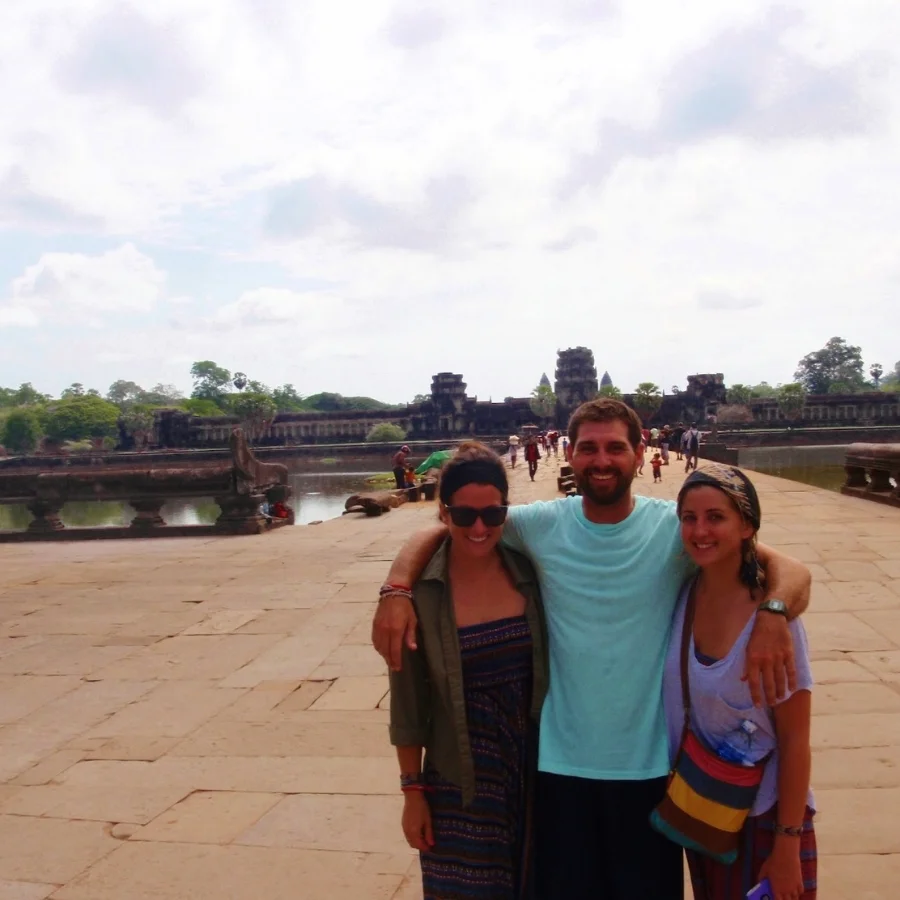 From there we visited the world famous Angkor Wat. This temple is just gigantic and coincidentally enough the world's largest temple. There were tourists encasing the temple so I was getting a bit frustrated by not being able to get that postcard image, but what can you do? It was neat that I was standing at these temples that previously I had only been admiring from across the world for so long, and was also interesting to hear all of the history behind the buildings, even if I was getting jumbled Thai English. The building was built under the Hindu religion but depending of the king at the time the main religion varied. Something i found fascinating was that one of the Hindu kings didn't appreciate the newly added Buddha statues and defaced most of them.