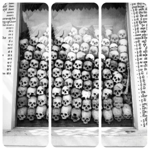 From here we stopped to talk about some of Cambodia's recent history and the meaning behind 'The Killing Fields. This event happened between 1975-1979 right after the Cambodian civil war. These fields are beyond numerous and where an amazing number were killed during the Khmer Rouge reign. Basically the Khmer Rouge was capturing and torturing anyone suspected of being affiliated with the former government. And unfortunately for the Cambodian population this was a majority of their professionals and intellectuals: professors, doctors, monks, and all political leaders. If you can imagine Pol Pot has been described at ' the Hitler of Cambodia.' The executions were things most of us could never think of, and the total death is argued but somewhere in the early millions.