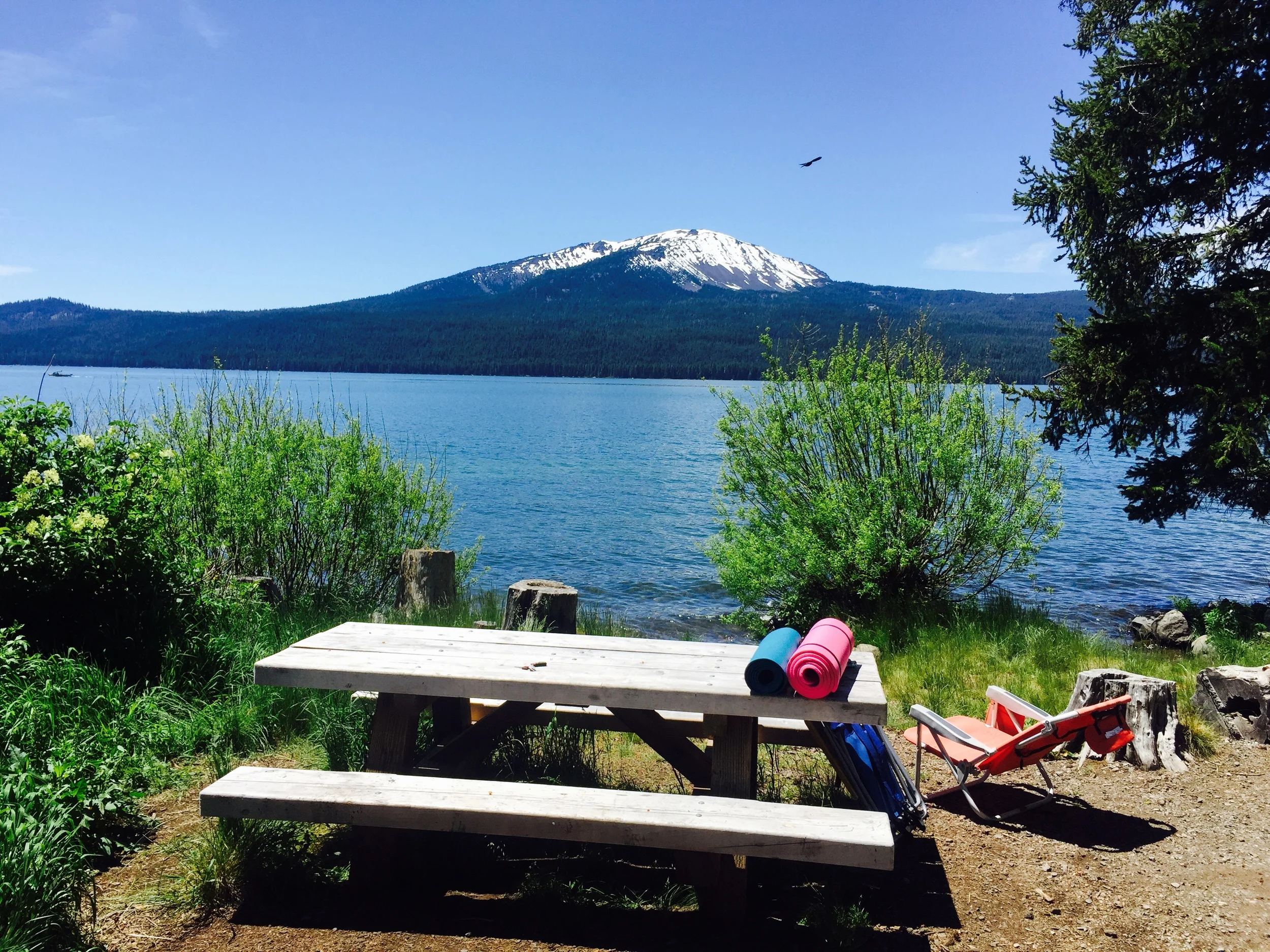 We woke super early to tackle 5 hours in the car across the Oregon border and out to Diamond Lake. The campground was empty so we got a prime spot, right on the lakeshore. We had a stunning and unobstructed view of a snow-capped mountain across the lake. It was totally unexpected and like nothing I’d ever seen before. After pitching the tent, I sat reclined with my feet in the water and laid out topless for a short while, completely undisturbed.
